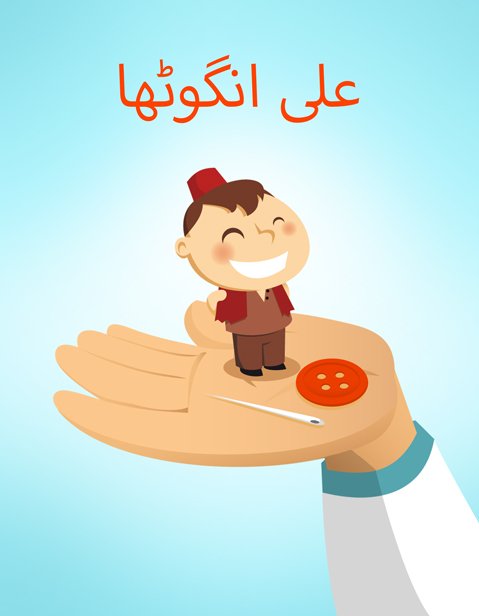 ‘یہ آسان ہو جائے گا،’ علی نے اپنی گہری، تیز آواز میں جواب دیا۔ ‘آپ مجھے اپنی جیب میں رکھ سکتے ہیں اور کوئی نہیں جان سکے گا کہ میں وہاں ہوں۔ آپ کپڑے میں تھوڑا سا سوراخ کر سکتے ہیں تاکہ میں سانس لے سکوں اور میں دیکھ سکوں کہ کیا ہو رہا ہے اور دنیا کے تمام نئےنظاروں سے لطف اندوز ہو سکوں۔’